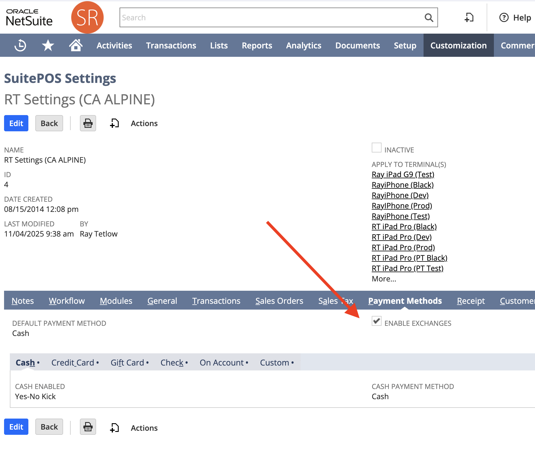 If the final total is +ve (or zero) the regular Sale Checkout Flow is performed; if -ve, the Return Checkout Flow is performed. POS Settings - Saved Searches:
